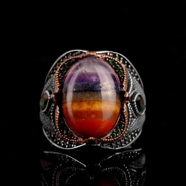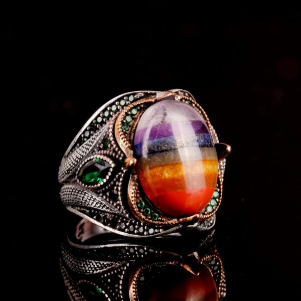 Gümüş Erkek Yüzüğü, Gökkuşağı Yüzüğü, Çok Renkli, Eşsiz El Yapımı Yüzük Ağırlık: 17.34gr