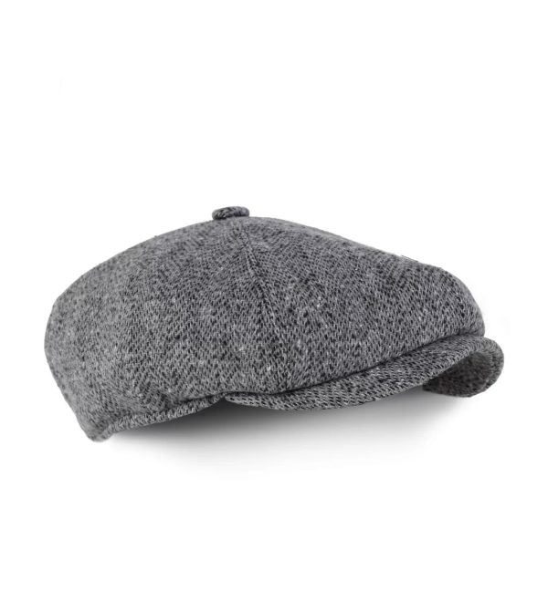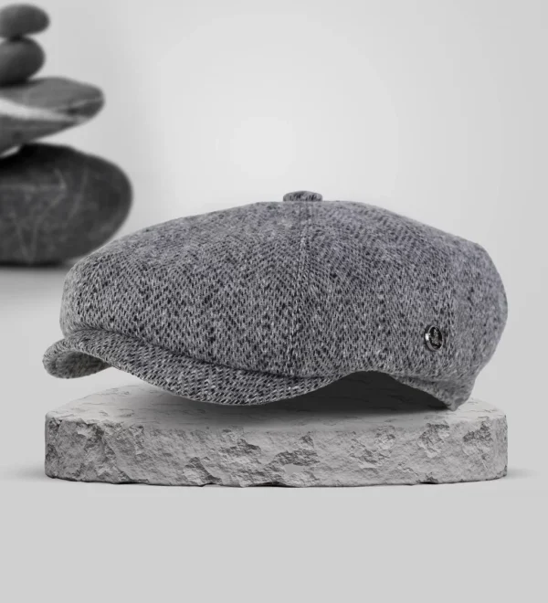 Gri Balık Sırtı Desenli Kaşe Kışlık Kumaş Erkek Kasket Şapka (Terletmez Astar)