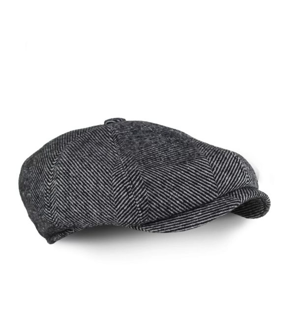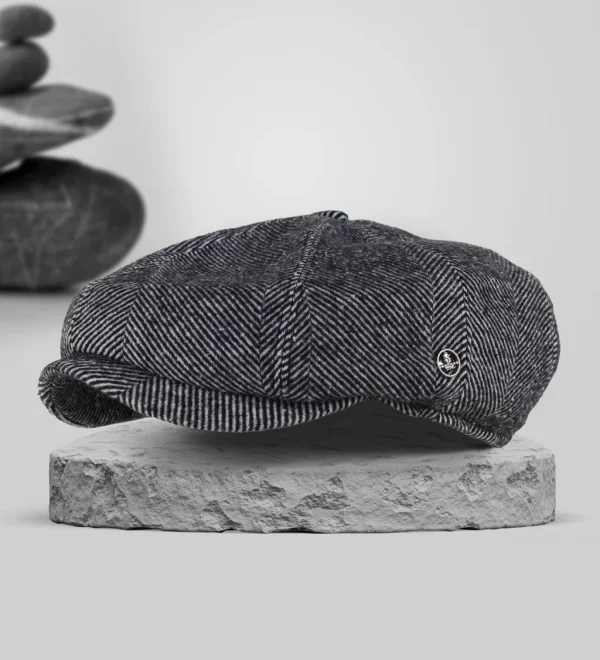 Gri Siyah Çizgili Yünlü Kaşe Kışlık Kumaş Erkek Kasket Şapka (Terletmez Dikişli Saten Astar)