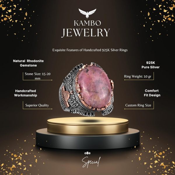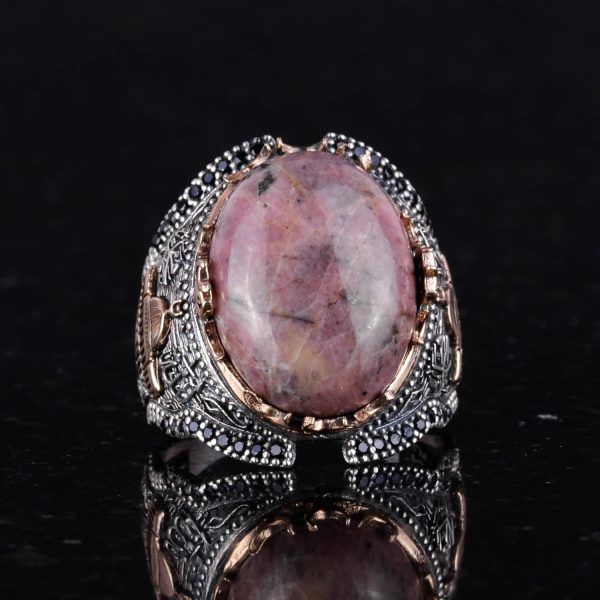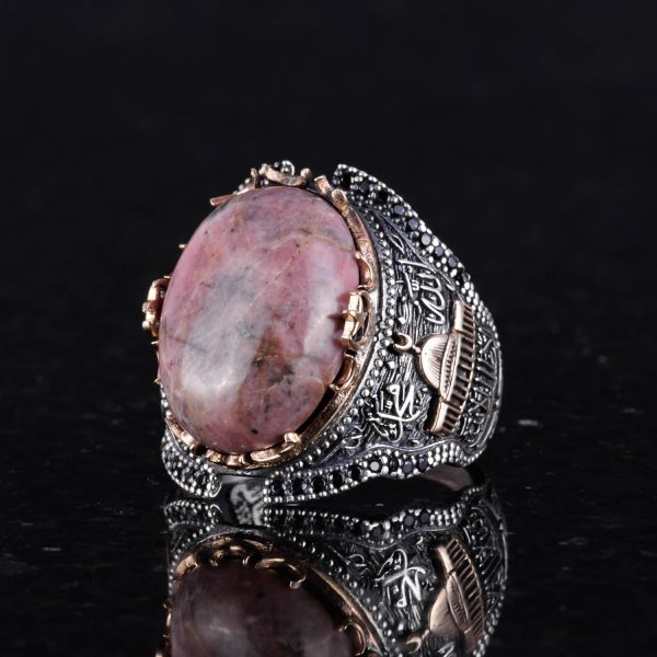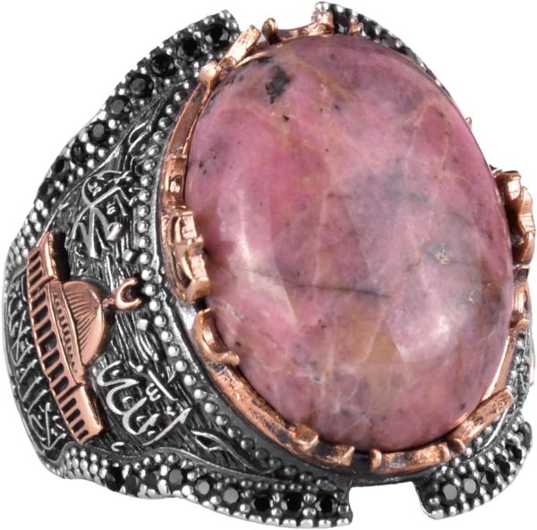Gümüş Camii Yüzük, Rhodonit Doğal Taş Yüzük, 925 Ayar Gümüş Erkek Yüzük