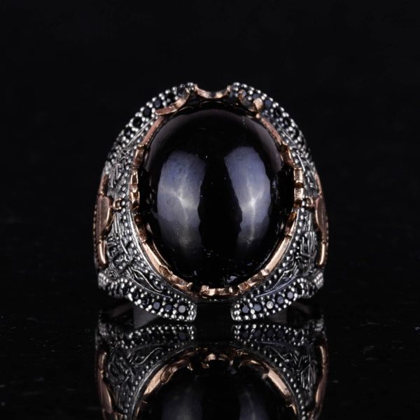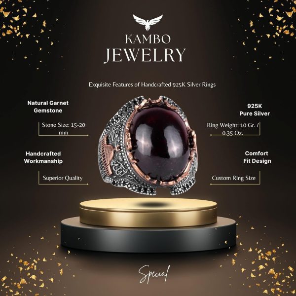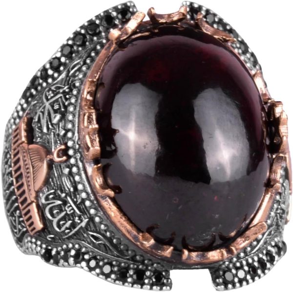 Gümüş Doğal Cabochon Granat Taşlı Yüzük, 925 Ayar Gümüş Yüzük, Farklı Yüzük