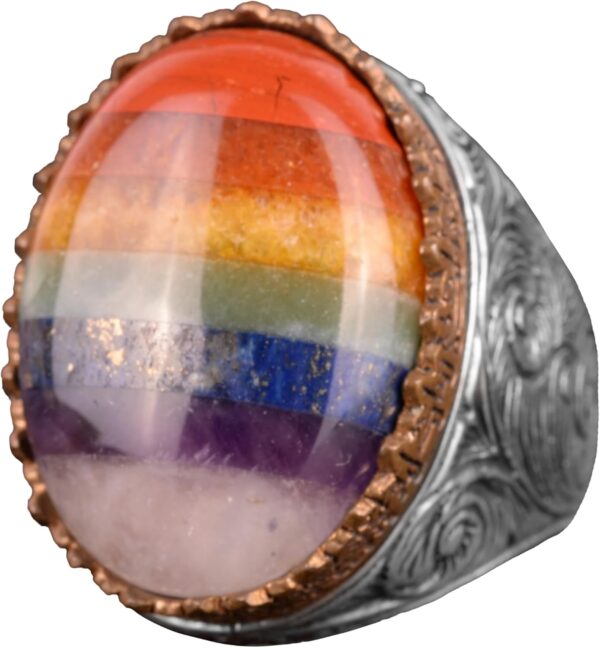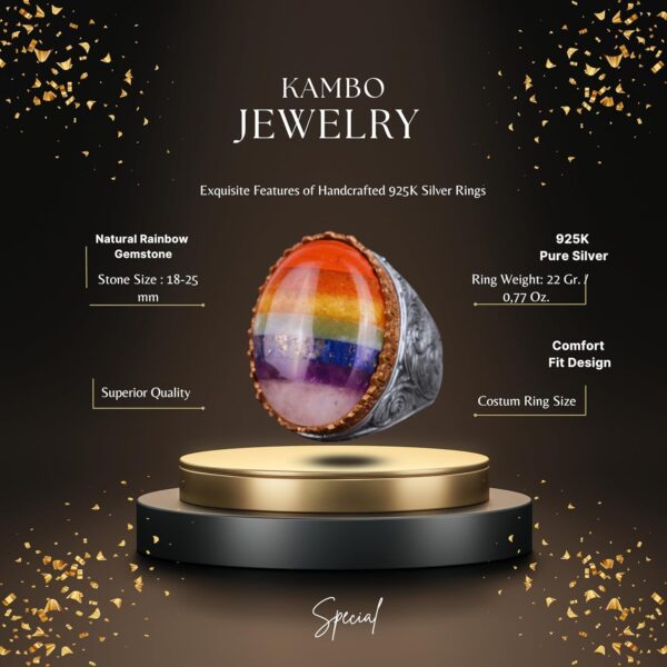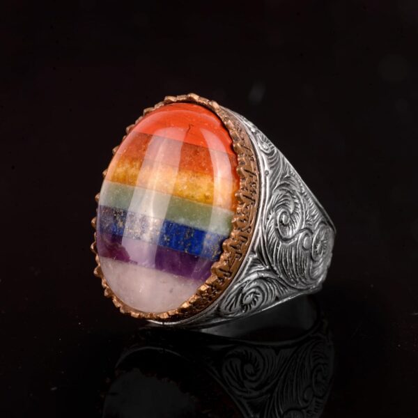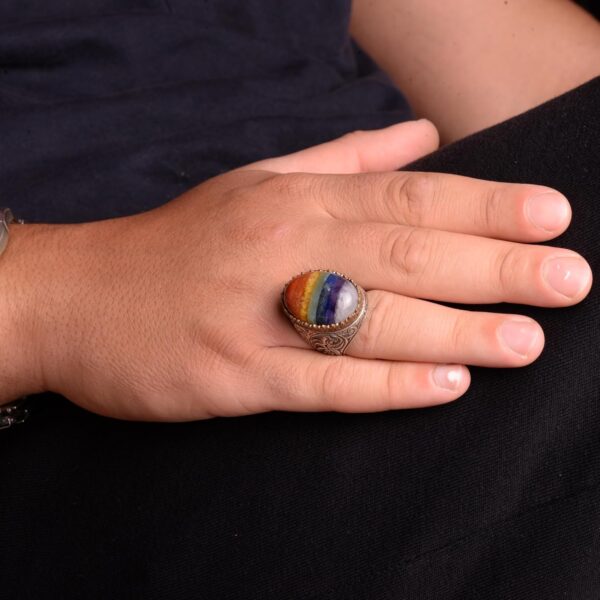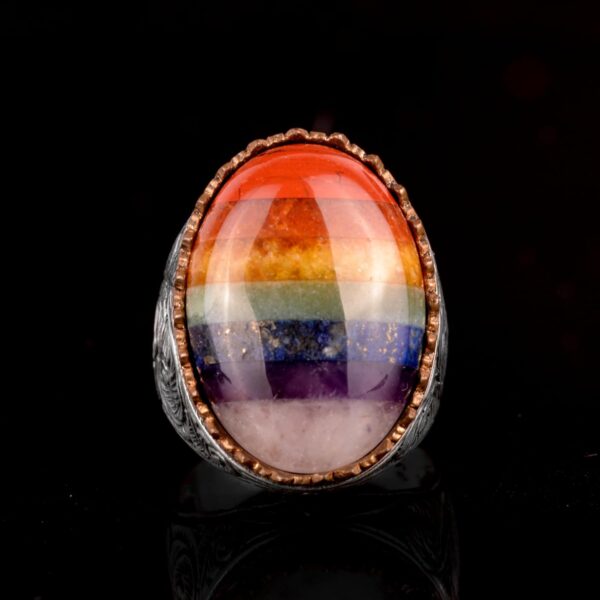 Gümüş Erkek Yüzüğü, Gökkuşağı Yüzüğü, Çok Renkli, Eşsiz El Yapımı Yüzük Ağırlık: 16.72gr