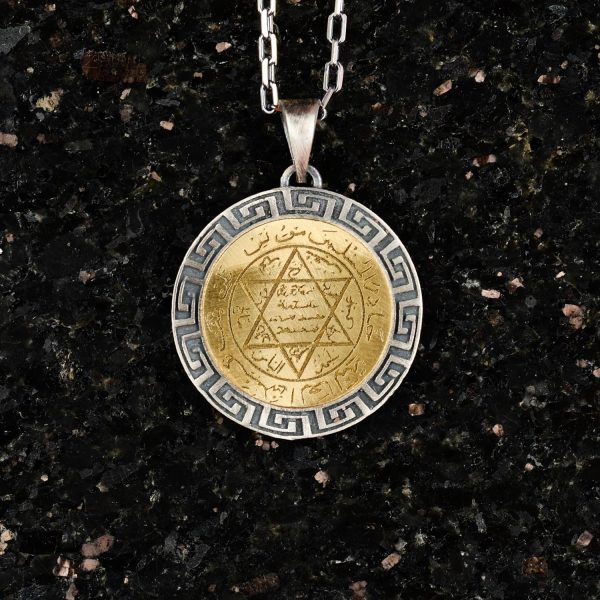 Gümüş Süleyman Mührü Kolye, 925 Ayar Gümüş Erkek Kolye, Yahudi Kolyesi