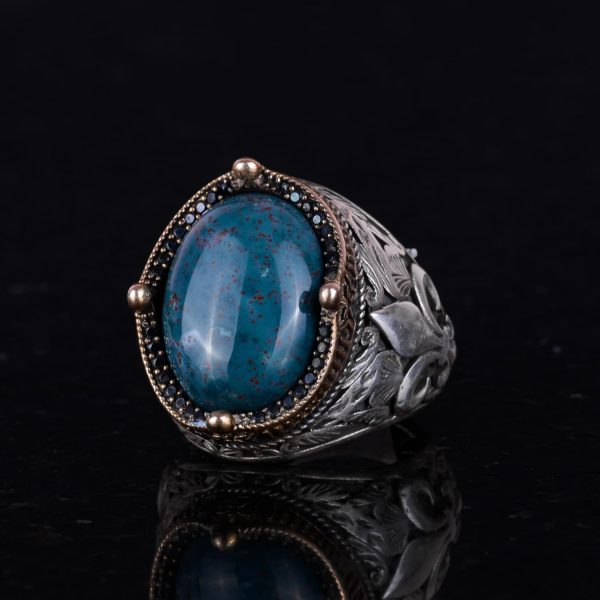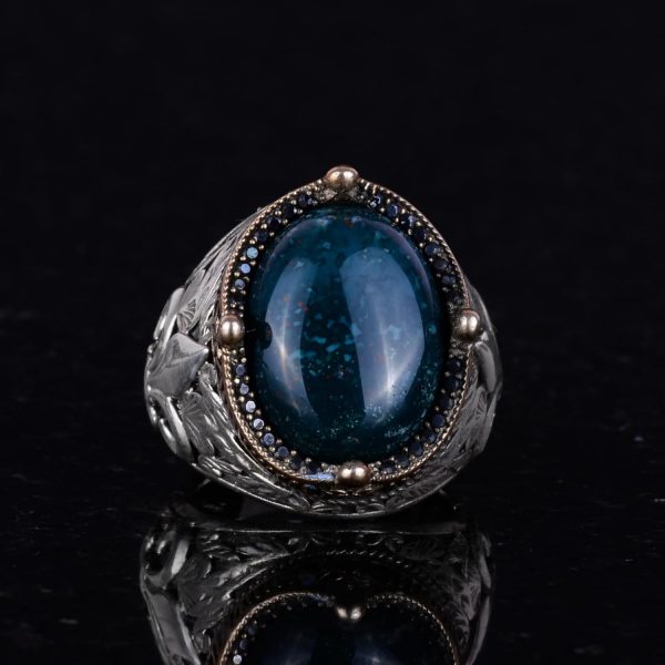 Gümüş Yüzük – El Yapımı Doğal Taşlı Yeşil Kan Taşı