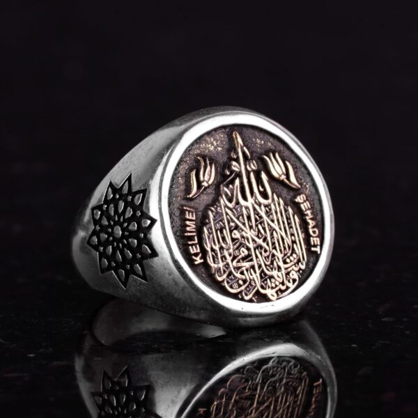 İslam İman İfadesi – Gümüş Erkek Yüzük – Şık Müslüman Sembol Yüzük (Özelleştirilebilir)
