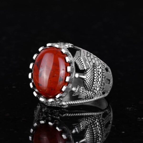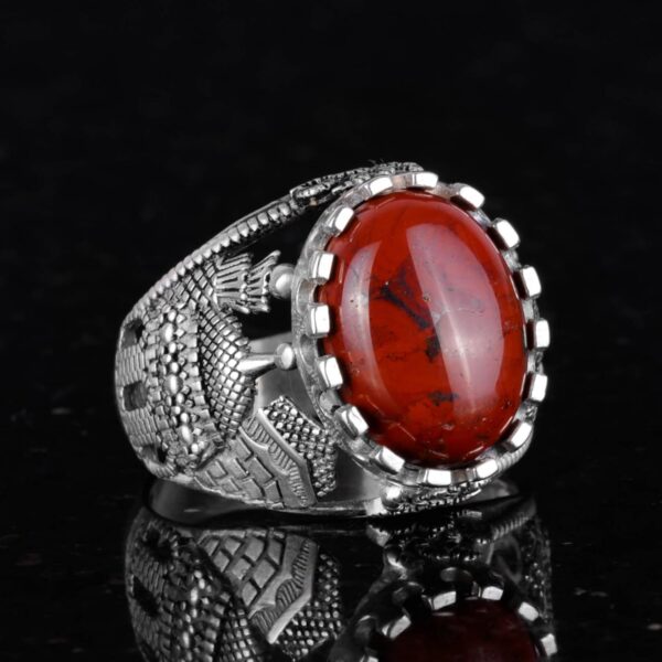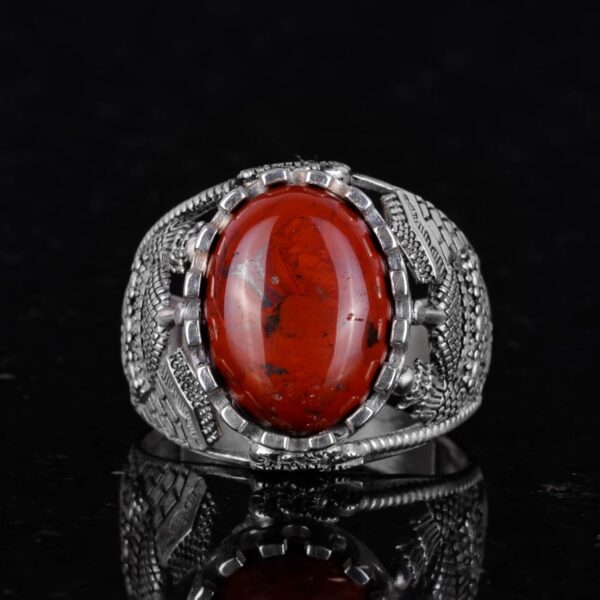 İslam Doğal Kan Taşı Yüzüğü, 925 Ayar Gümüş Yüzük Erkekler İçin, Farklı Yüzük