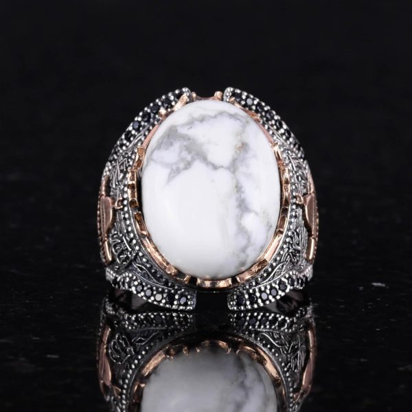 925 Ayar Gümüş Erkek Yüzük, Howlite Taş Yüzük, Eşsiz El Yapımı Gümüş Yüzük Ağırlık: 18.89gr Taş Boyutu: 18.13mm