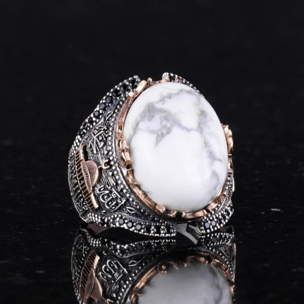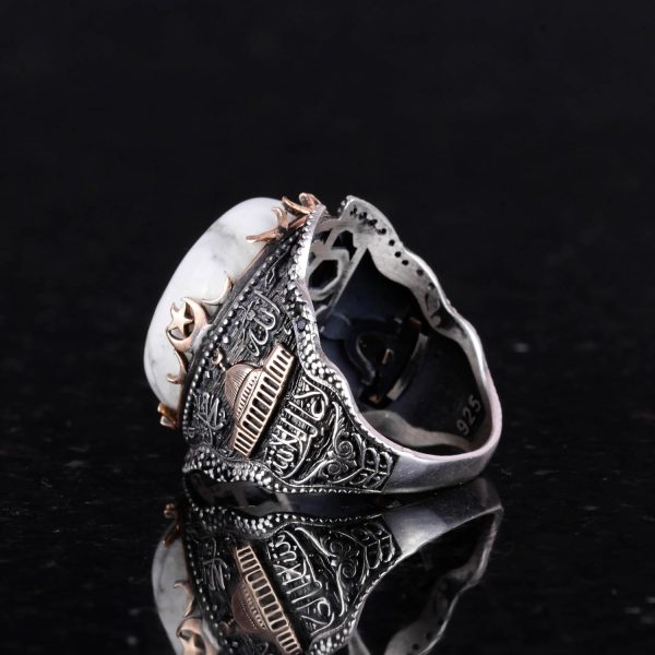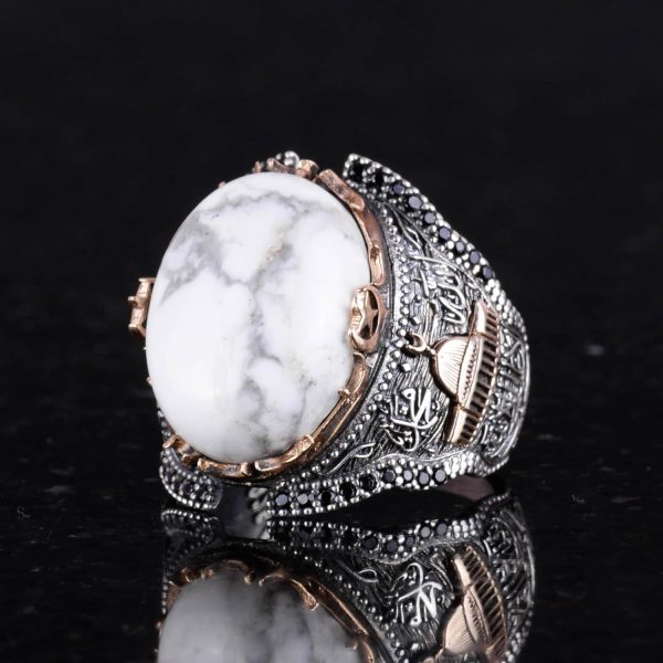 İslami Camii Doğal Howlite Taşlı Erkek Yüzük, 925 Ayar Gümüş Yüzük