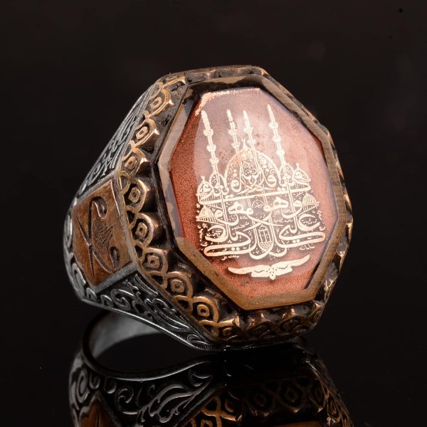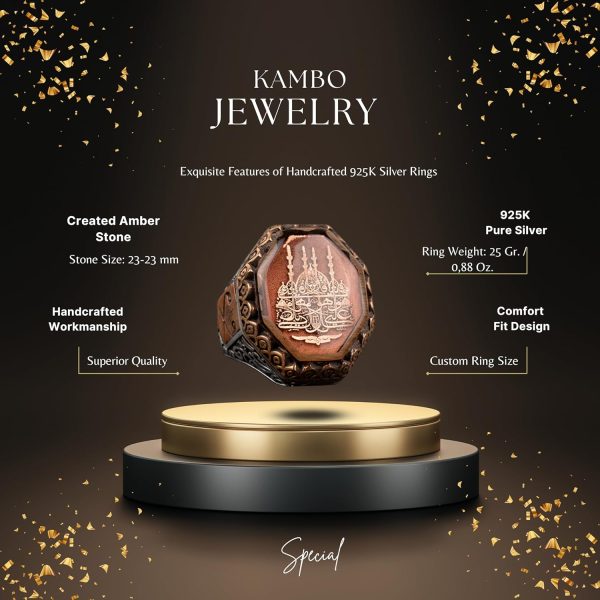 Yüksek kaliteli 925 ayar gümüşten üretilmiş İslami Erkek Yüzüğümüzün ruhsal zarafetini kucaklayın. Bu muhteşem parça, İslami mirasın ve inancın güzelliğini ve önemini yansıtan özenle tasarlanmış bir cami sembolü ile süslenmiştir.