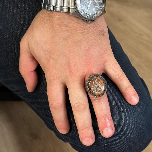 İslami Erkek Yüzük – 925 Ayar Gümüş ve Cami Sembol Tasarımı