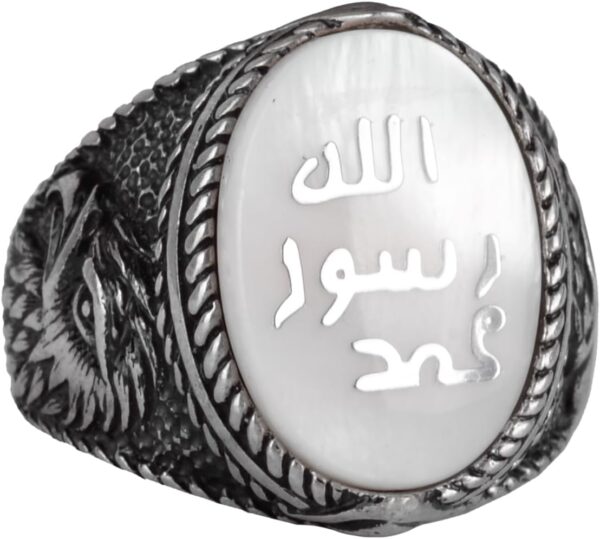 İslami Erkek Yüzük – Kartal Sembolü Yüzük – 925 Ayar Gümüş El Yapımı Erkek Yüzük (Beyaz)