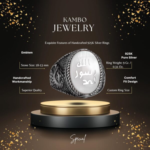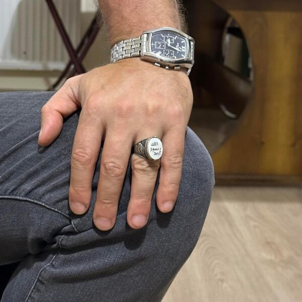 Bu yüzük sadece bir takı parçası değildir; güç ve kültürel mirasın bir sembolüdür. Zamansız tasarımıyla bu el yapımı İslami yüzüğün zarafetini ve ustalığını kucaklayın.