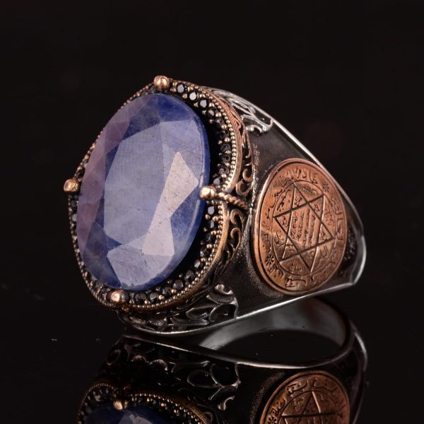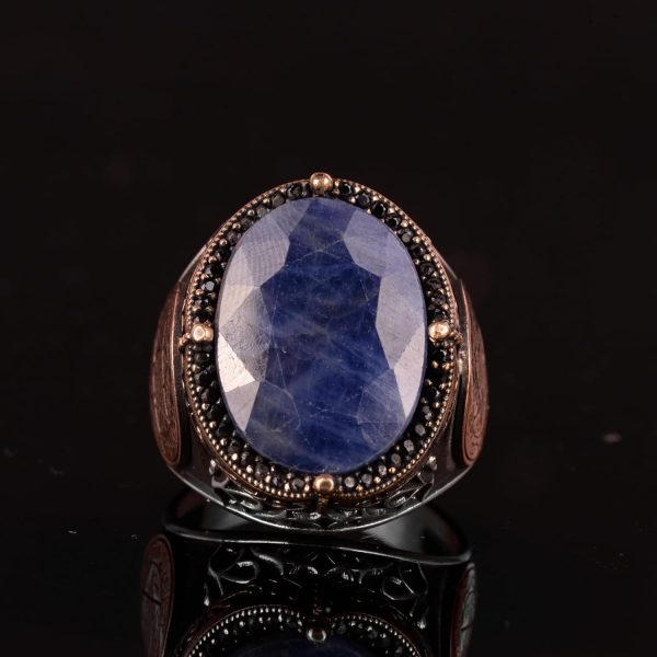 İslami Gümüş Yüzük | Doğal Mavi Safir Taşı | Şık 925 Ayar Sterlin Gümüş Erkek Yüzüğü | Sadakat ve Bilgelik Tasarımı
