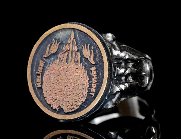 İslami İman İtirafı ile Gümüş Erkek Yüzük – Müslüman Yüzük