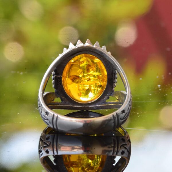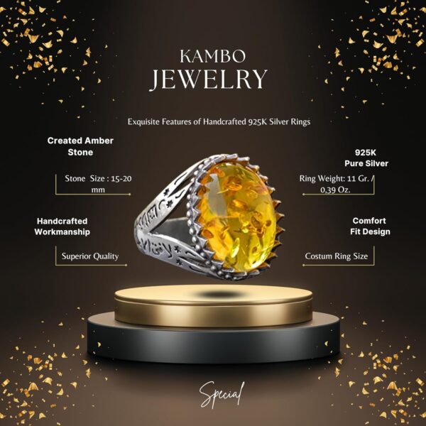 İslami Yüzük, Erkekler için 925K Katı Gümüş Yüzük, Yapay Amber Taşı Yüzüğü