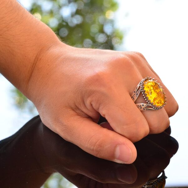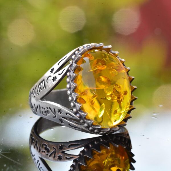 Arap Yüzüğü, İslami Yüzük, 925K Saf Gümüş Yüzük, Oluşturulmuş Kehribar Taşı Yüzüğü, İslami sanatın güzelliğini ve kültürel önemini kucaklayın. 925K saf gümüşten ustalıkla hazırlanmış bu yüzük, doğal kehribarın sıcaklığını ve parıltısını mükemmel bir şekilde taklit eden oluşturulmuş bir kehribar taşı ile süslenmiştir ve dikkat çekici bir merkez parça oluşturur. Bant üzerindeki ince Arap motifleri, bu yüzüğe zarafet ve kültürel derinlik katmakta, İslami tasarımın zengin mirasını takdir edenler için ideal bir aksesuar haline getirmektedir. Yüksek kaliteli gümüş, dayanıklılık ve lüks bir his sunarak günlük kullanım veya özel günler için mükemmeldir. Özellikle erkekler için tasarlanan bu yüzük, cesur ve zarif bir ifade sunarak her kıyafeti benzersiz çekiciliğiyle zenginleştirir. Ayrıca, Müslüman erkekler için anlamlı bir hediye seçeneği sunarak, Bayram, Ramazan ve diğer dini etkinlikler gibi kutlamalar için idealdir. Bu zarif Arap Yüzüğü ile mücevher koleksiyonunuza gelenek ve zarafet katın ve onun, kültürel gururunuzun ve kişisel tarzınızın bir sembolü olmasını sağlayın.