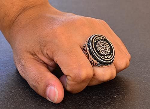 İslamik Gümüş Erkek Yüzük – Şık Müslüman Sembol Yüzük – Geleneksel Zanaatkarlık