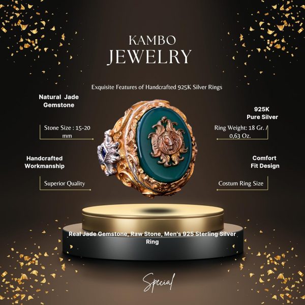 El Yapımı Jade Aslan Yüzüğü – 925k Katı Gümüş Erkekler için Altın Kaplama Yüzük