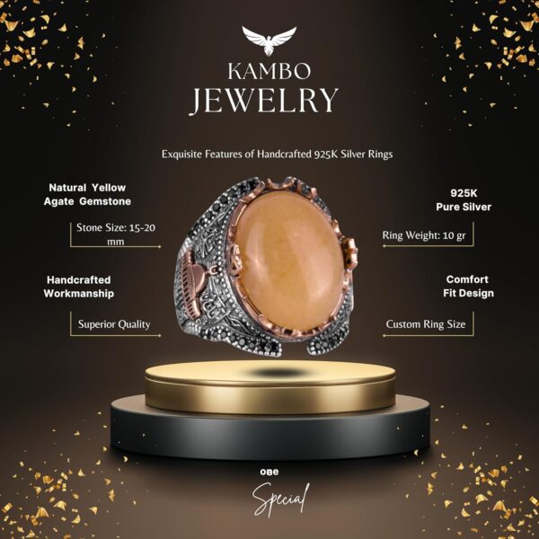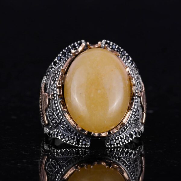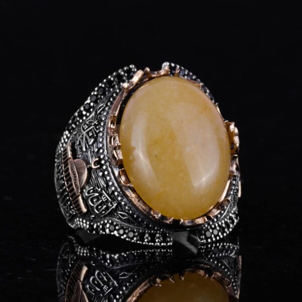 Mescidi Aksa Doğal Sarı Akik Taş Yüzük, 925 Ayar Gümüş Yüzük Erkekler İçin