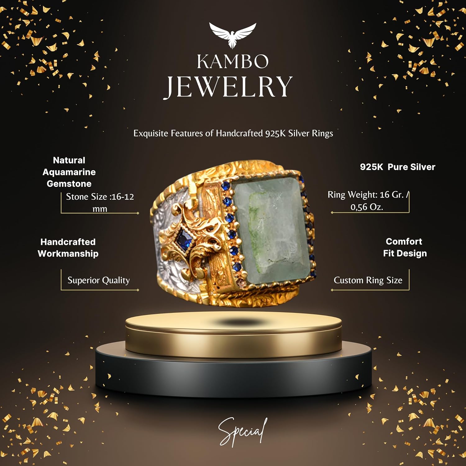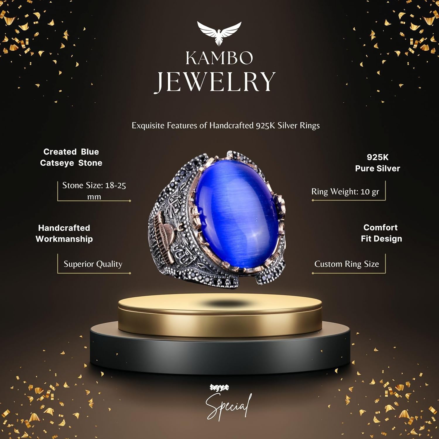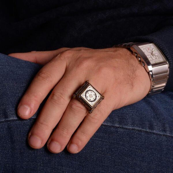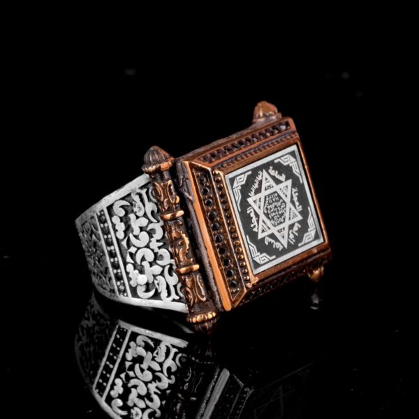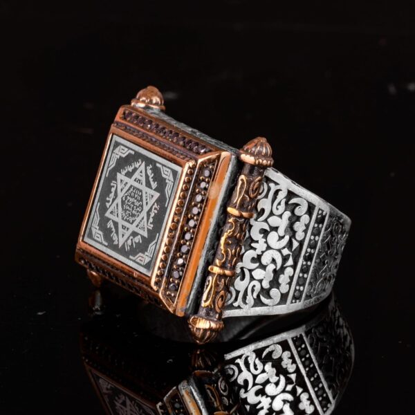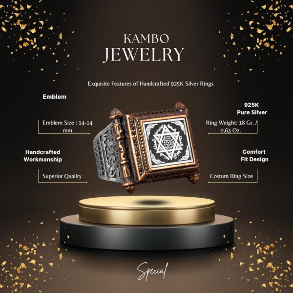 Kabbalah Yüzüğü, Davud Yıldızı Yüzüğü, Süleyman Mührü Yüzüğü, Erkekler için Ayar 925 Gümüş İslami Yüzük. Bu dikkat çekici yüzük, Kabbalah’ın derin sembollerini İslami geleneklerle birleştirerek Davud Yıldızı ve Süleyman Mührü’nü içerir. Yüksek kaliteli 925 ayar gümüşten üretilen bu yüzük, hem dayanıklılık hem de lüks bir his sunarak günlük kullanım veya özel etkinlikler için mükemmel bir seçenek haline gelir. Her yüzük titizlikle el yapımıdır, bu da benzersiz detaylar ve üstün zanaatkarlık sergilemektedir. Karmaşık tasarımı, bilgelik ve koruma sembolü olan güçlü Süleyman Mührü’nü ve derin anlam taşıyan Davud Yıldızı’nı içerir, bu da kültürel ve dini sembollerin cesur bir ifade parçasında harmanlanmasını sağlar. Bu yüzük sadece bir takı parçası değil; kültürel gurur ve dini mirasın bir sembolüdür. Özel günler, Ramazan, Bayram ve diğer dini kutlamalar için ideal bir hediye sunarak Müslüman erkekler için anlamlı ve düşünceli bir armağan sunar. Bu eşsiz ve zarif yüzüğü koleksiyonunuza ekleyin ve kültürel ve dini kimliğinizin bir kanıtı olmasına izin verin.