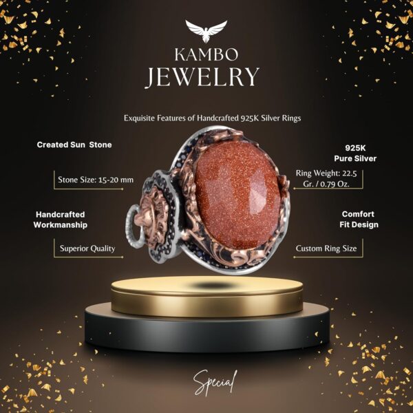 Aksesuar oyunuzu KAMBO Brown Sunstone Created Stone Yüzüğümüzle yükseltin. 925K Ayar Gümüş Erkek Yüzüklerimiz, geniş bir yaratım yelpazesi sunuyor. İster Sıcak Bal Amberi’nin sıcak parıltısına, ister Soğuk Mavi Paraiba’nın sofistikeliğine çekilmiş olun, koleksiyonumuz her zevke hitap ediyor. Her yüzük, dayanıklılığı ve kalıcı parlaklığı garanti eden birinci sınıf ayar gümüşle, detaylara özen gösterilerek titizlikle tasarlandı. Zarafet ve kaliteyi takdir edenler için mükemmel olan bu yüzükler, lüks ve stilin bir ifadesi olarak tasarlandı. Canlı renkleri ve seçim lüksünü kucaklayın, estetiğinize mükemmel şekilde uyacak bir yüzükle kendinizi ifade edin. Yüzük Ağırlığı: 22gr Taş Boyutu: 15-20 mm