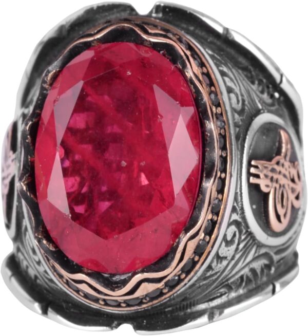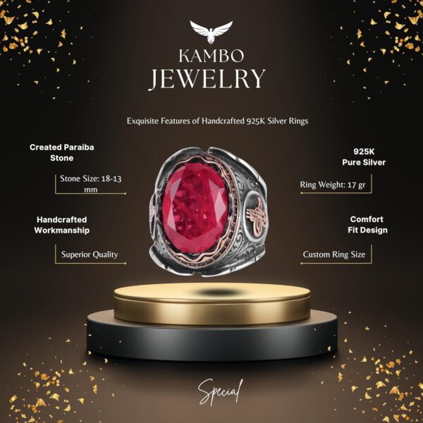 Kırmızı Paraiba Yapay Taş Yüzük, 925 Ayar Gümüş Yüzük, Osmanlı Gümüş Yüzük