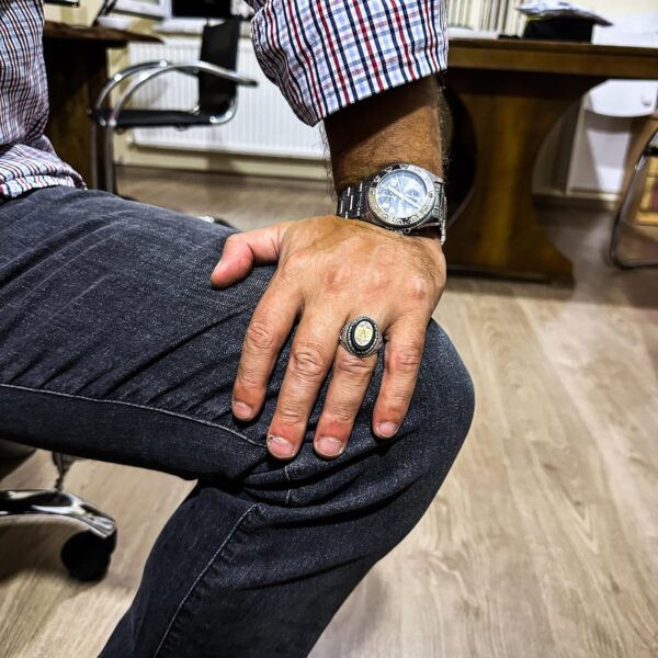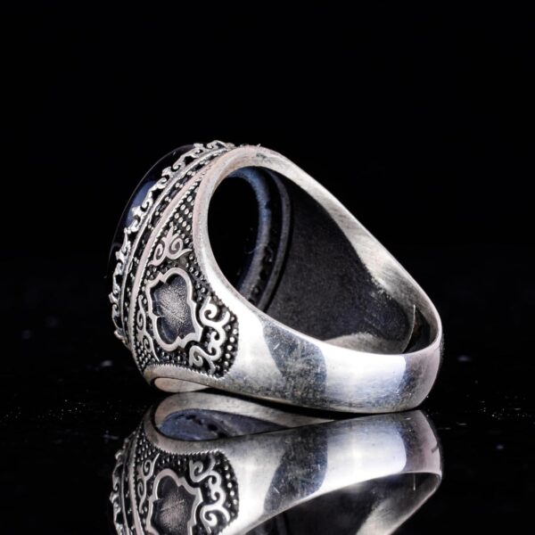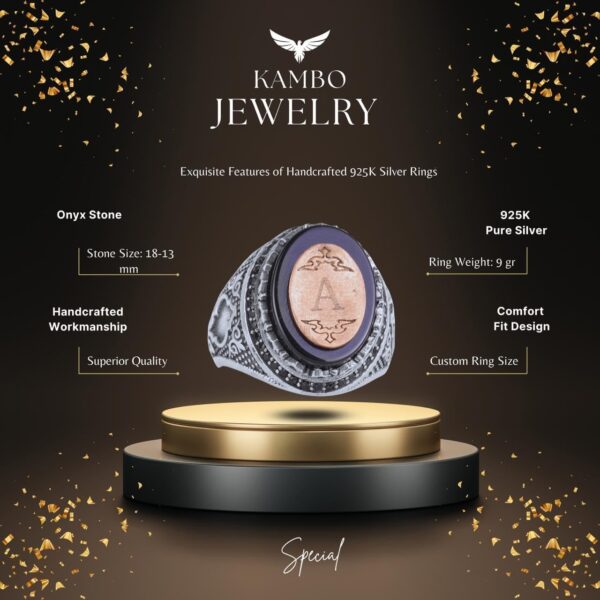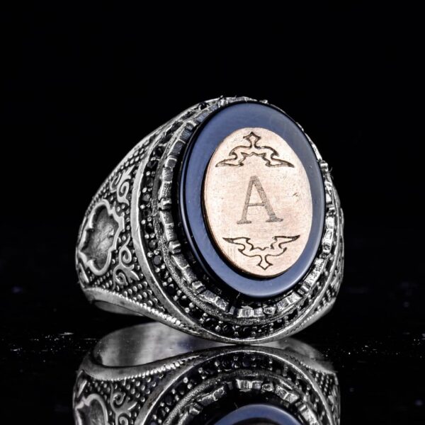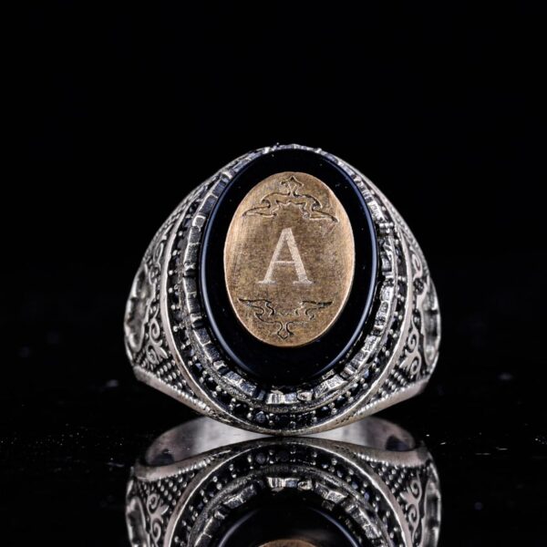 Kişiselleştirilebilir Monogram Oniks Taşlı Yüzük – 925 Ayar Gümüş Kişisel Yüzük Erkekler İçin