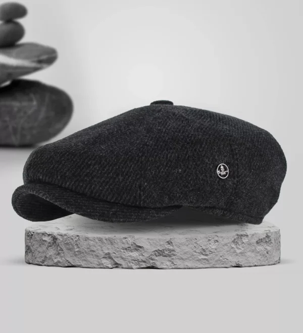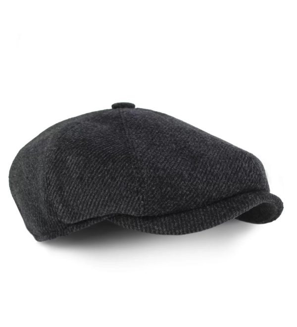 Koyu Gri Siyah Çizgili Yünlü Kaşe Kışlık Kumaş Tommy Shelby Kasket Şapka (Terletmez Saten Astar)