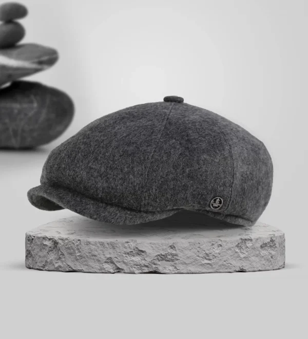 Koyu Gri Yünlü Kaşe Kışlık Kumaş Erkek Kasket Şapka