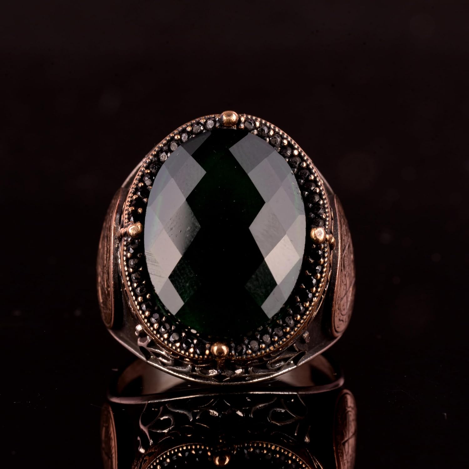 925 Ayar Gümüş erkek yüzük etnik, Eşsiz El Yapımı Gümüş Yüzük. Taş Boyutu: 18-13mm Ağırlık: 12.00 gr