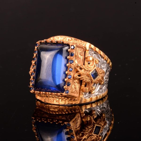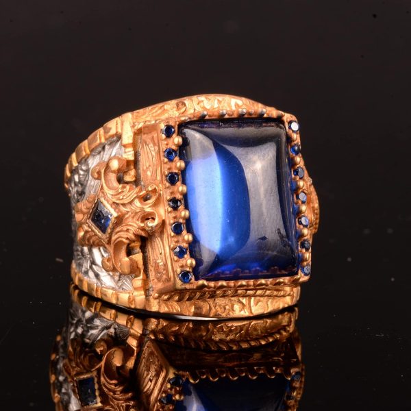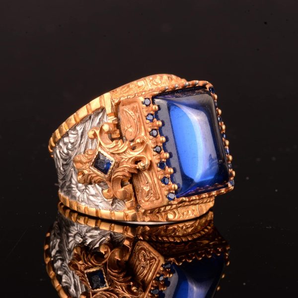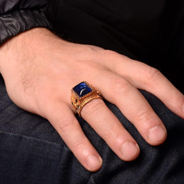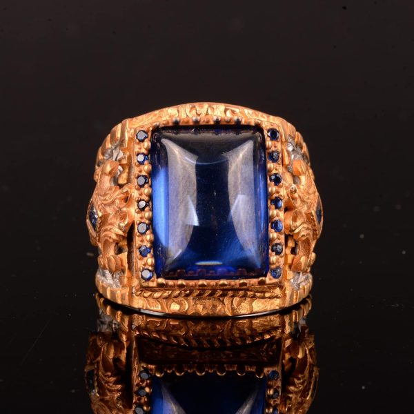 Kral Yüzük, 925 Ayar Gümüş Yüzük, Rodaj Kaplama, Yapay Mavi Akik Taşı