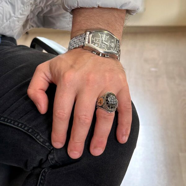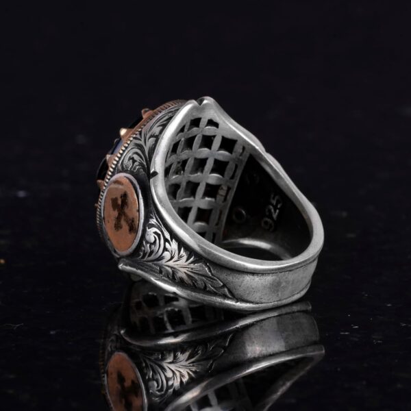 Kutsal Aile Gümüş Yüzük – Erkekler İçin 925K Gümüş Haç Desenli Bant