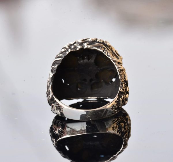 Sağlam ve erkeksel bir estetikle tasarlanan bu yüzük, farklı ve anlamlı takıları takdir eden erkekler için mükemmeldir. Cesur tasarımı, günlük kullanıma ya da özel günlerde güçlü bir moda ifadesi yaratır.