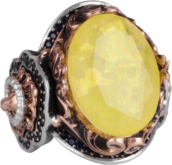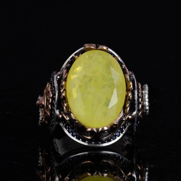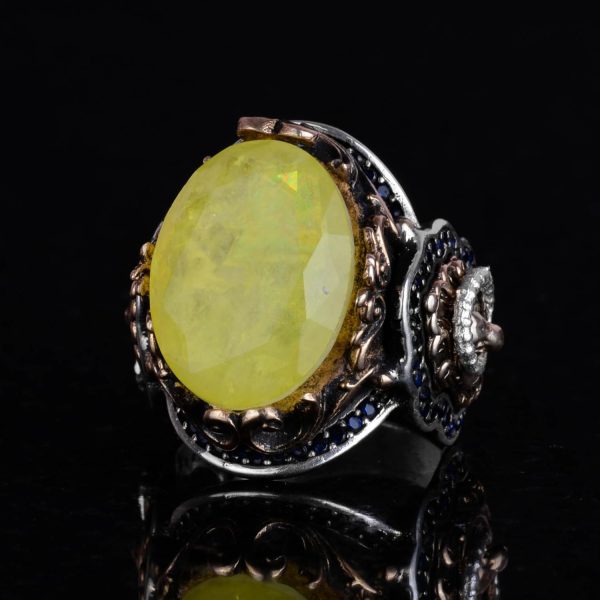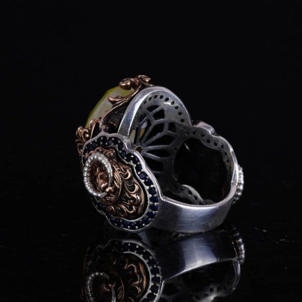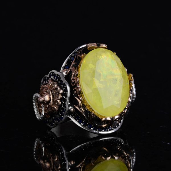 Leo Sembol Yüzüğü, Sarı Paraiba Taşlı Yüzük, 925 Ayar Gümüş Yüzük, Hayvan Gümüş Yüzük