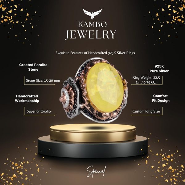 Bu KAMBO yüzüğü, 925K gümüşten titizlikle hazırlanmıştır ve Leo’nun ateşli kişiliğini yansıtan canlı bir sarı Paraiba taşına sahiptir. Detaylı Leo sembolü, bu yüzüğe asil bir güç katmakta ve onu cesur bir ifade parçası haline getirmektedir.