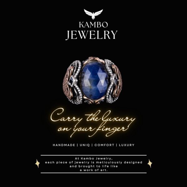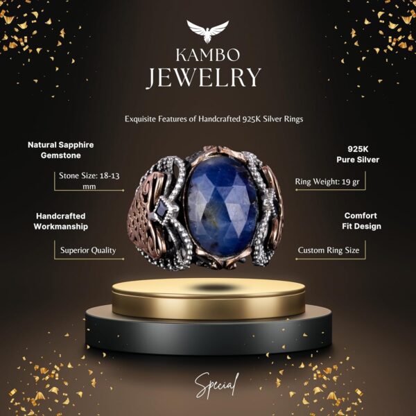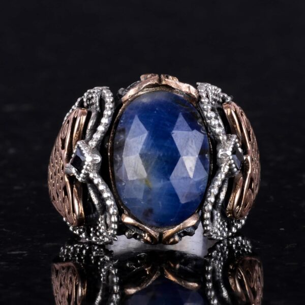 Doğal Mavi Safir Taşlı, 925 Ayar Sert Gümüş Erkek Yüzük – Doğal Taşlarla El Yapımı Zarafet