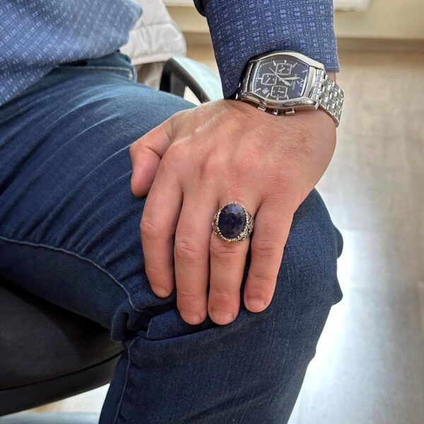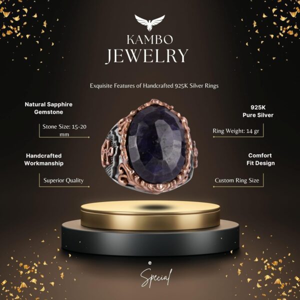 Doğal Mavi Safir Taşlı Yüzük, Denizci İskelesi Yüzüğü 925K Katı Gümüş Erkek Yüzüğü – El Yapımı Zarafet
