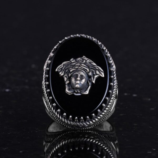 Medusa Başı Gümüş Yüzük – Yunan Mitolojisi Erkek Yüzüğü – 925 Ayar Gümüş Yüzük