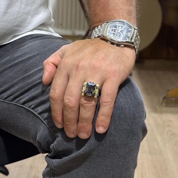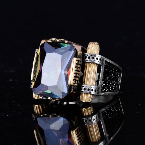 Mistik Topaz Taş Yüzük – 925 Ayar Gümüş Yüzük, Tasarım Gümüş Erkek Yüzüğü