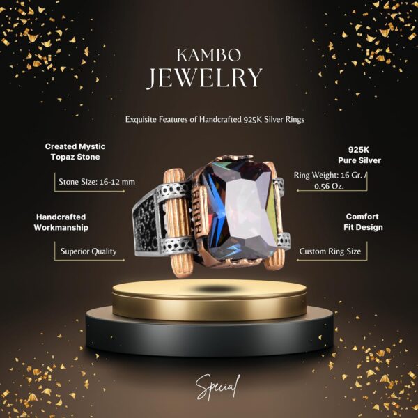 KAMBO Yapımı Mistisizm Topaz Taşı Yüzüğü ile zamansız şıklığı ve canlı güzelliği keşfedin. Bu muhteşem parça sadece bir yüzük değil; aynı zamanda parlaklık, zanaatkarlık ve stilin bir ifadesidir.