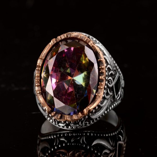 Mistik Topaz Yapay Taş, 925 Ayar Gümüş Erkek Yüzük, El Yapımı Erkek Yüzüğü