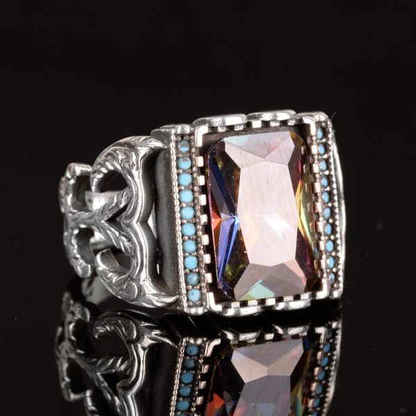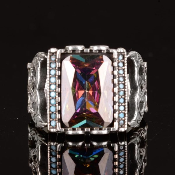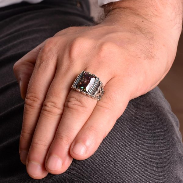Mistis Topaz Taşı Gümüş Erkek Yüzük, 925 Ayar Gümüş Yüzük