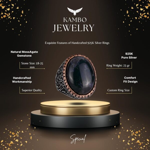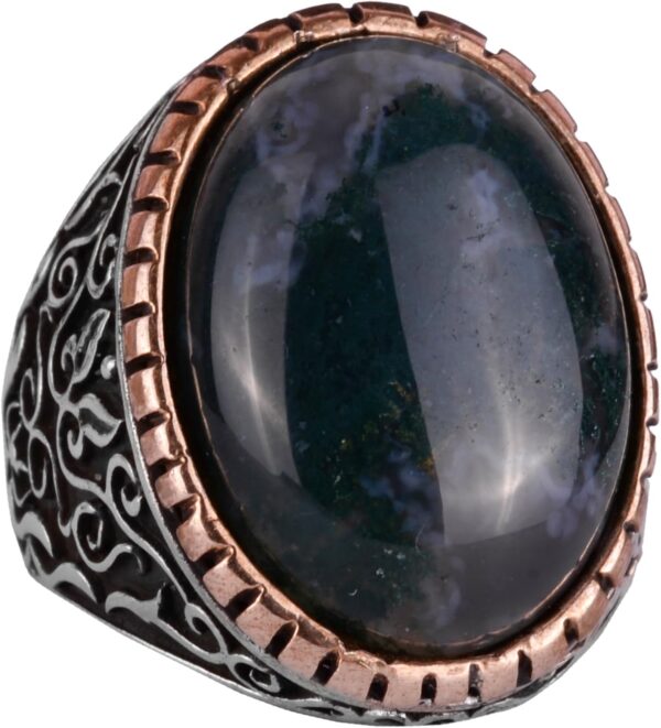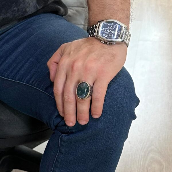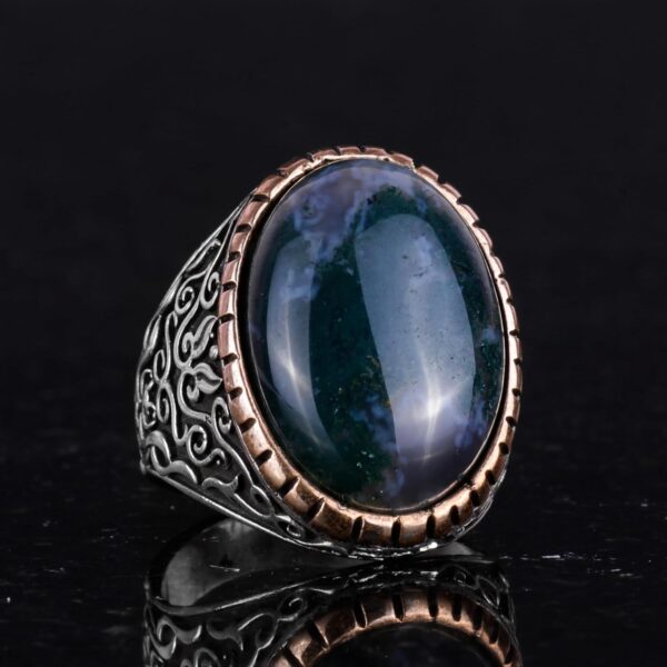 Moss Agate Doğal Taş Yüzük, 925K Katı Gümüş Erkek Yüzüğü, El Yapımı Şıklık
