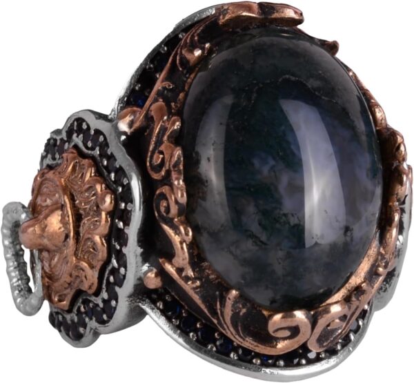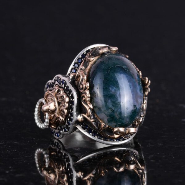 Doğal Yosunlu Akik Taş Yüzük, Aslan Başı Erkek Yüzüğü, 925K Saf Gümüş Erkek Yüzüğü – El Yapımı Şıklık