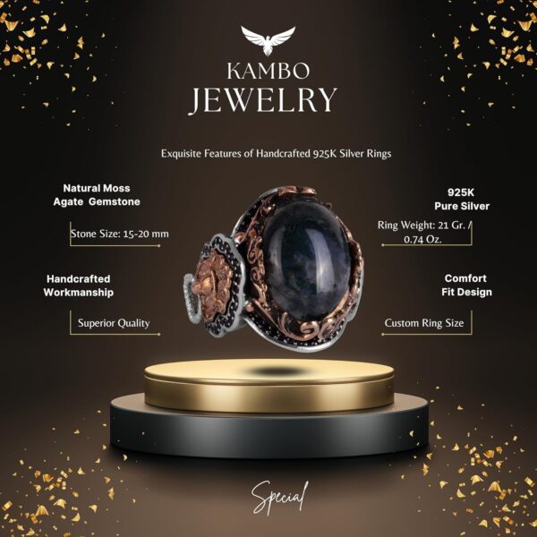 KAMBO Moss Agate Taş Yüzüğü ile stilinizi artırın ve güç ile büyümenin zamansız sembollerini kucaklayın.