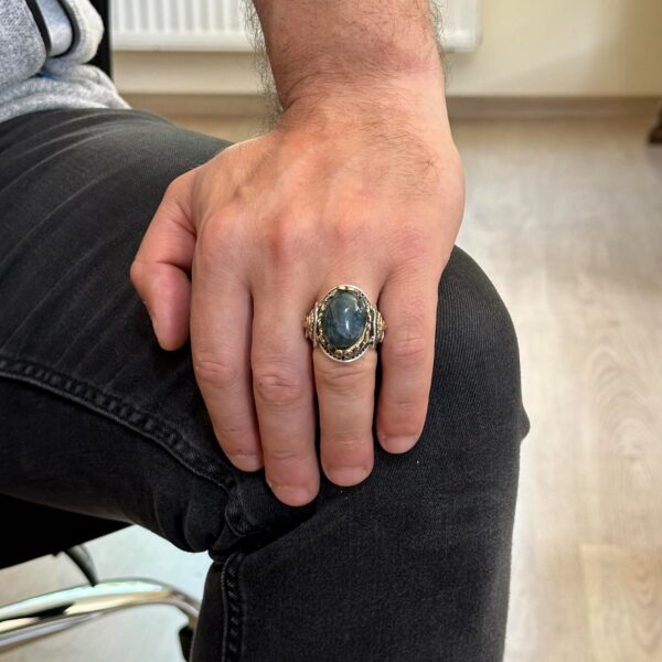 “Erkekler için Yeşil Turkuaz Taş Yüzük, 925 Ayar Gümüş Vintage Tasarım” sepetinize eklendi.