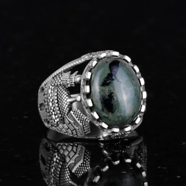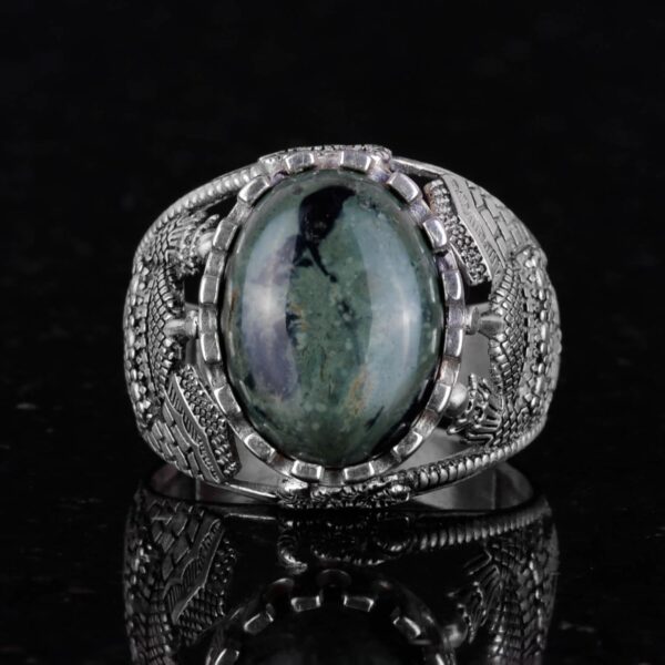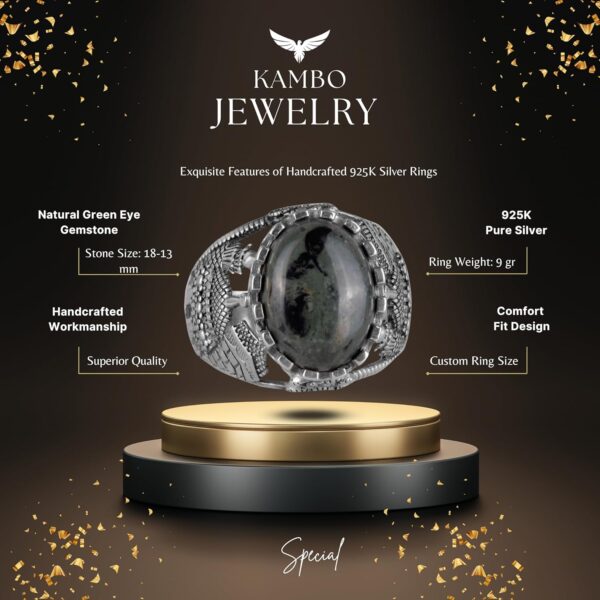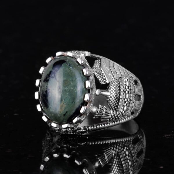 Muslim Yeşil Göz Doğal Taş Yüzük – Canlı 925 Ayar Katı Gümüş Erkek Yüzük – Doğal Vigor Tasarımı