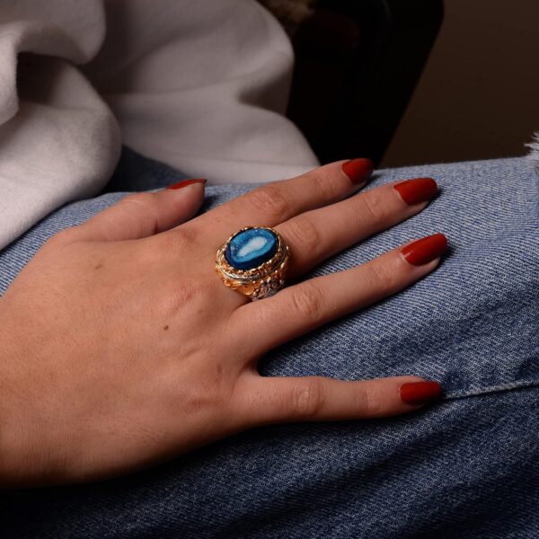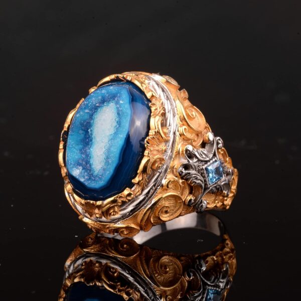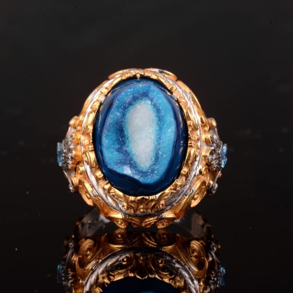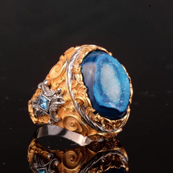 Doğal Druzy Kuvars ile Gümüş Doğum Taşı Yüzüğü – Gümüş Erkek Büyük Yüzük