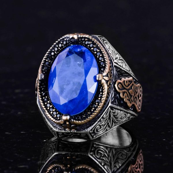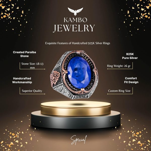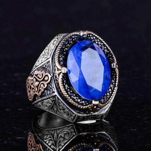 Navy Mavi Paraiba Yapay Taş Yüzük, 925 Ayar Gümüş Yüzük, Şık El Yapımı Gümüş Erkek Yüzüğü