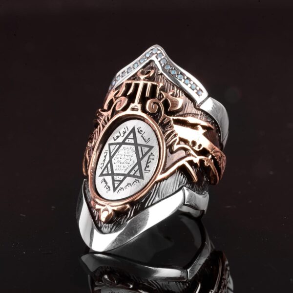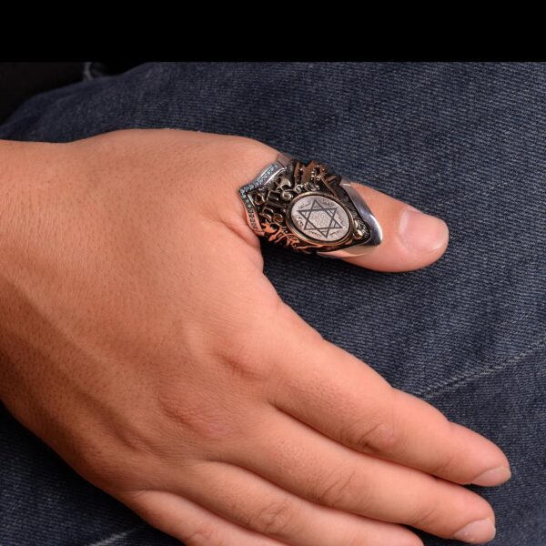 Okçular Yüzüğü, Davut Yıldızı Yüzüğü, İslami Başparmak Gümüş Erkek Yüzüğü, 925 Ayar Gümüş Yüzük (Ayarlanabilir)
